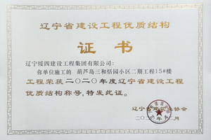 “葫蘆島三和恬園小區(qū)二期工程19#樓”榮獲2020年度遼寧省建設(shè)工程優(yōu)質(zhì)結(jié)構(gòu)稱號(hào)