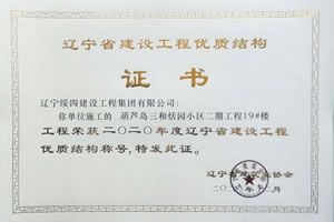“葫蘆島三和恬園小區(qū)二期工程6#樓”榮獲2020年度遼寧省建設(shè)工程優(yōu)質(zhì)結(jié)構(gòu)稱號(hào)