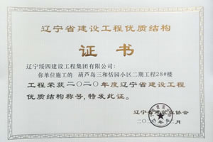 “葫蘆島三和恬園小區(qū)二期工程28#樓”榮獲2020年度遼寧省建設(shè)工程優(yōu)質(zhì)結(jié)構(gòu)稱號(hào)