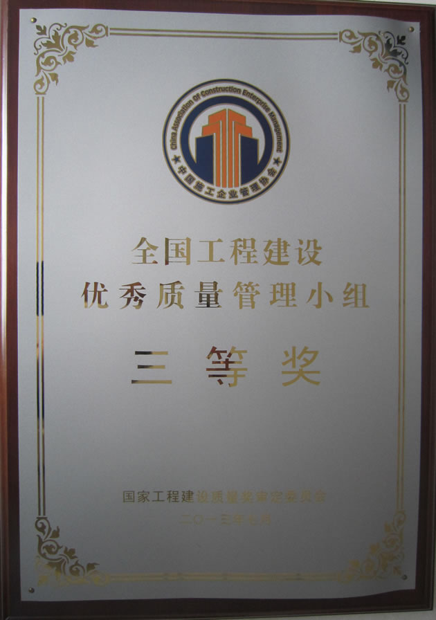 全國優(yōu)秀質(zhì)理管理小組三等獎