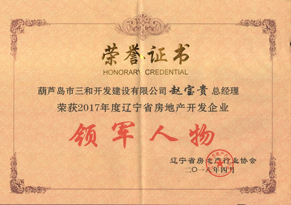房地產(chǎn)開(kāi)發(fā)企業(yè)領(lǐng)軍人物獎(jiǎng)狀
