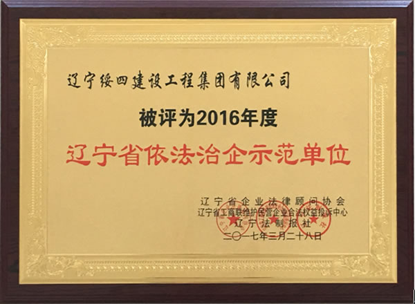 表彰會上,遼寧省企業(yè)法律顧問協(xié)會常務(wù)副會長兼秘書長侯成良對2016年度評選“遼寧省依法治企示范單位、遼寧省優(yōu)秀企業(yè)法律顧問、遼寧省企業(yè)法制論文一等獎”相關(guān)情況做了評選說明; 我公司榮獲2016年度 “遼寧省依法治企示范單位”。