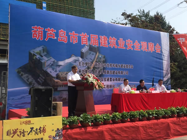 2017年9月13日,葫蘆島市首屆建筑業(yè)安全觀摩會(huì)在東北分公司葫蘆島興隆大家庭項(xiàng)目隆重舉行。葫蘆島市住房和城鄉(xiāng)建設(shè)委員會(huì)主任柴文海,各(縣)市區(qū)城建局專管安全副局長、安監(jiān)站站長,市區(qū)所有在建項(xiàng)目的建設(shè)、施工、監(jiān)理單位相關(guān)人員都參加了此次盛會(huì)。集團(tuán)董事長趙寶貴及羅忠海項(xiàng)目部、袁微項(xiàng)目部等相關(guān)人員也參加此次觀摩會(huì)。