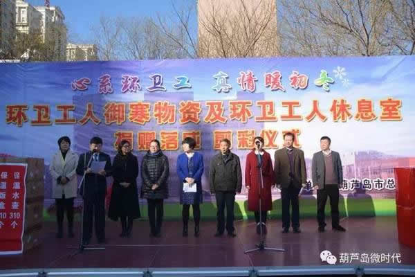 葫蘆島市總工會黨組副書記、常務(wù)副主席吉銀霞在儀式上講話說,在全市上下深入學(xué)習(xí)貫徹黨的十九大精神和凝心聚力決勝全面小康社會之際。進(jìn)一步倡導(dǎo)形成全社會理解、尊重、關(guān)愛環(huán)衛(wèi)工人的良好氛圍,是建設(shè)和諧城市的重要內(nèi)容之一。向社會各界發(fā)出了《關(guān)愛環(huán)衛(wèi)工人,共建美麗濱城》倡議書,希望幫助環(huán)衛(wèi)工人解決工作和生活中的現(xiàn)實問題,社會各界能伸出溫暖之手,為環(huán)衛(wèi)工人做一些力所能及的事,把更多關(guān)心關(guān)愛送給他們。