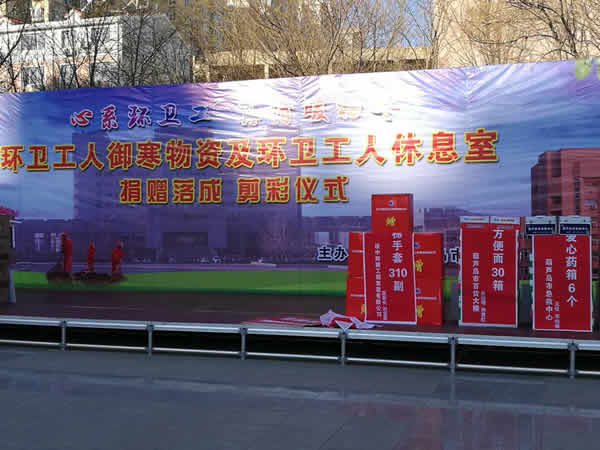 市總工會舉辦的環(huán)衛(wèi)工人御寒物資及環(huán)衛(wèi)工人休息室捐贈落成剪彩儀式現(xiàn)場