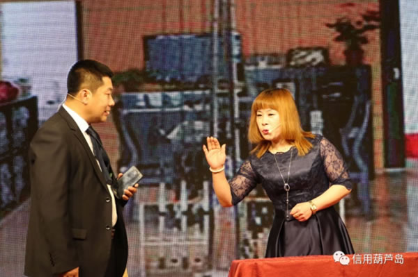 聯(lián)誼會(huì)上的文藝演出可以說是精彩紛呈,高潮迭起。歡快的開場(chǎng)舞引燃了全場(chǎng)的熱情,詩朗誦《誠(chéng)信之歌》把每一個(gè)會(huì)員單位融入其中,用詩歌的形式講述著誠(chéng)信的故事,讓大家心潮澎湃,備受鼓舞。歌曲《闖天涯》、《美麗的神話》還在耳邊余音繚繞。誠(chéng)信主題小品《姜太公釣魚》讓大家在歡笑中體會(huì)誠(chéng)信的重要,軍旅舞蹈英姿颯爽,鐵骨錚錚。阜新銀行綏中支行小伙伴們表演的三句半《會(huì)員贊》,用生動(dòng)詼諧的方式為多家會(huì)員單位的優(yōu)異成績(jī)點(diǎn)贊,迎來掌聲陣陣!段覀兊淖鎳(guó)歌甜花香》唱出全場(chǎng)所有嘉賓熱愛祖國(guó)的心聲。