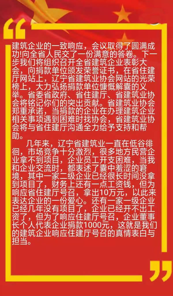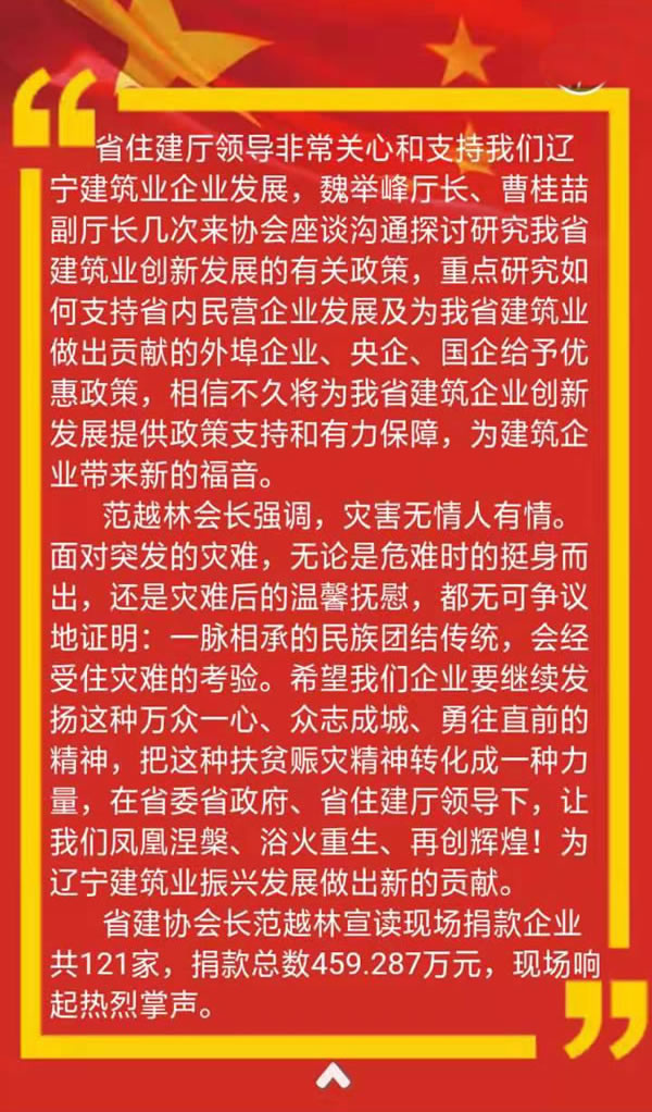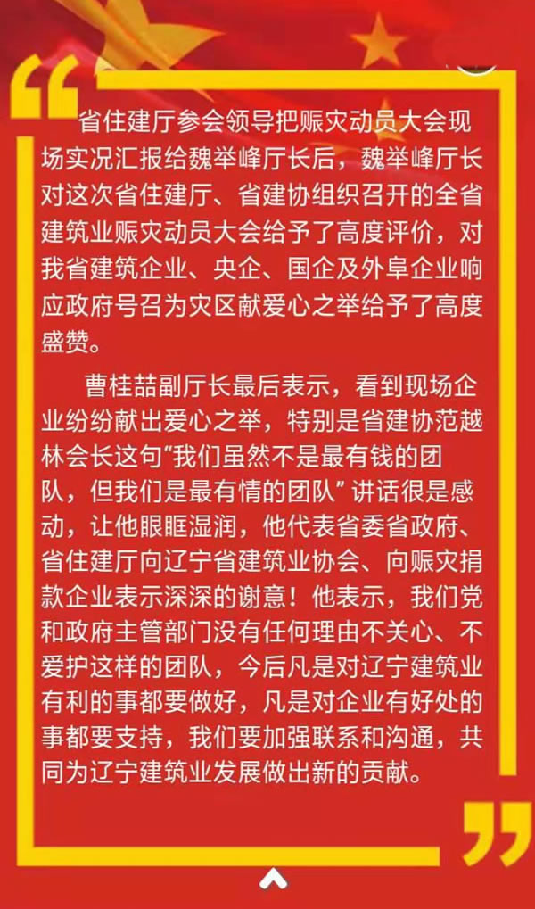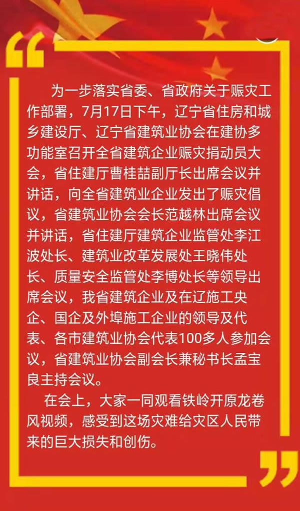全省建筑業(yè)企業(yè)賑災(zāi)動(dòng)員大會(huì)在沈陽(yáng)隆重召開(kāi)