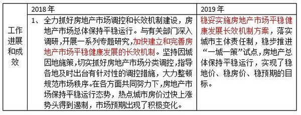 對于2019年的工作進展和成效方面,住建部工作會議指出,穩(wěn)妥實施房地產(chǎn)市場平穩(wěn)健康發(fā)展長效機制方案,落實城市主體責任制,穩(wěn)步推進“一城一策”試點,房地產(chǎn)總體保持平穩(wěn)運行,實現(xiàn)了穩(wěn)地價、穩(wěn)房價、穩(wěn)預期的目標。