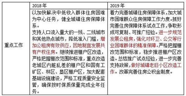 解讀:與2018年相比,此次會議中將租賃住房分成了市場化租賃和政策性租賃兩個領域。其中,政策性租賃住房首次提到。