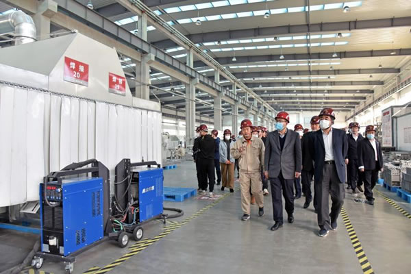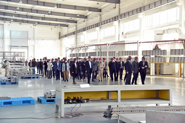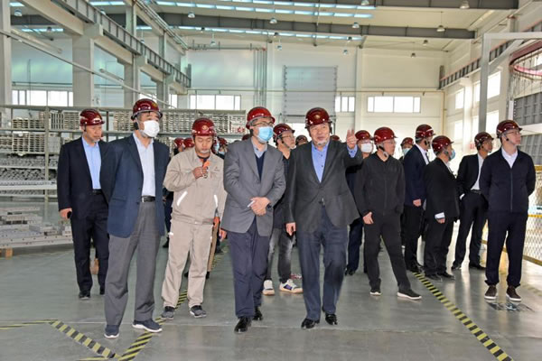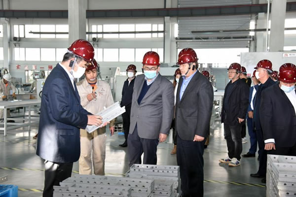 省住建廳領導、省建協(xié)領導及與會代表參觀1#車間-鋁模板生產(chǎn)車間