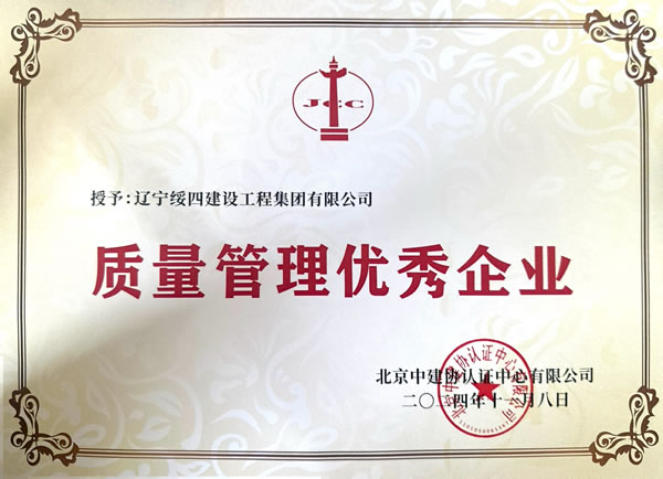 遼寧綏四建工集團獲評“質(zhì)量管理優(yōu)秀企業(yè)”