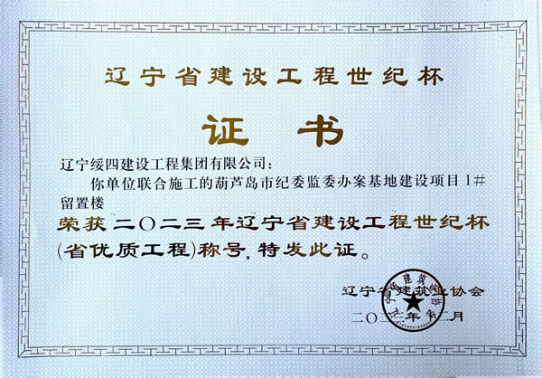 葫蘆島市紀(jì)委監(jiān)委辦案基地建設(shè)項目1#留置樓 榮獲2023年遼寧省建設(shè)工程世紀(jì)杯(省優(yōu)質(zhì)工程)稱號