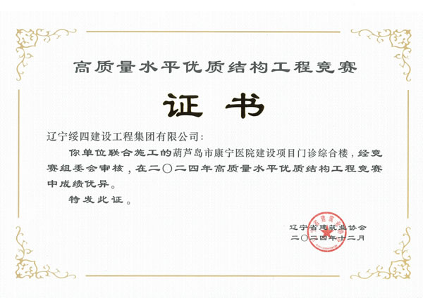 葫蘆島市康寧醫(yī)院建設(shè)項(xiàng)目門診綜合樓被評(píng)為2024年年高質(zhì)量水平優(yōu)質(zhì)結(jié)構(gòu)工程